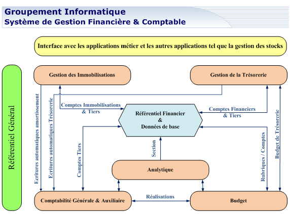 Sur les chiffres réels ou prévisionnels s’appuyant sur un module de gestion de données de base, pas moins de 6 autres applications intégrées en natif entre elles et avec nos autres systèmes concourent à assurer les Comptabilités ( générale, auxiliaire, analytique et budgétaire ), la gestion de la trésorerie ( avec un module spécifique de placement ) et la gestion des immobilisations. |
