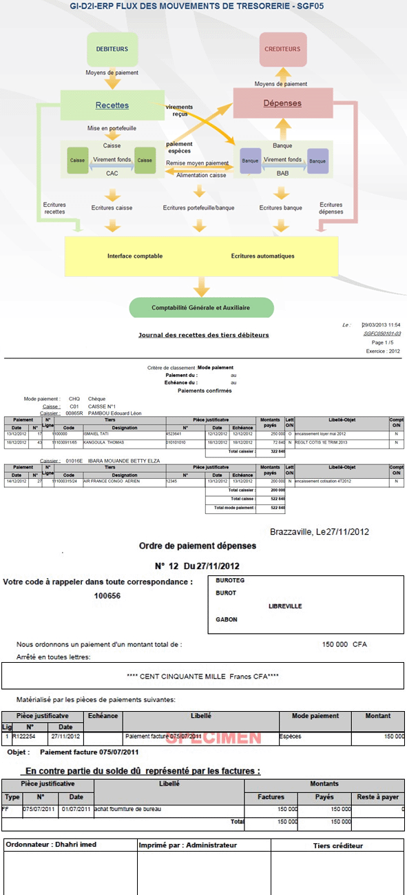 Traitant les opérations en amont et en aval de la comptabilité, cette application a pour objet de prendre en charge les mouvements financiers à la naissance et de les suivre dans toutes les phases de remise à la banque, de comptabilisation .., de présenter des situations basées sur les dates de valeur et / ou d'échéance afin de dégager les excédents ou les déficits de trésorerie, de produire les documents de paiements des tiers,